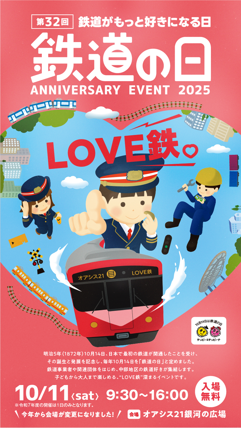 オアシス21で行われる、第32回「鉄道の日」記念イベントで、当社のオリジナルグッズや鉄道部品の販売を行います。