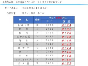 令和8年3月14日(土) ダイヤ改正のお知らせ